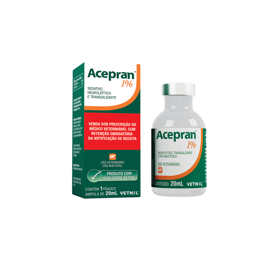 Para ser utilizado em equinos, por via intravenosa ou intramuscular, na dose de 0,1 mg/kg, ou seja, 0,01 mL/kg. Após administração intravenosa, os efeitos sedativos iniciam-se em 10 a 15 minutos, proporcionando 60 a 120 minutos de sedação. Quando administrado pela via intramuscular, a Acepromazina pode levar o equino a se mostrar cooperativo, orientado e tranquilo, permitindo a realização de procedimentos superficiais como, por exemplo: exame clínico de animais em estação, transporte e redução do estresse quando necessária a separação do potro da mãe. As dosagens poderão ser alteradas de acordo com a orientação o Médico Veterinário.