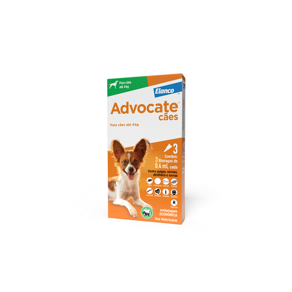 ADVOCATE™ E UMA PIPETA DE USO TOPICO MENSAL E FACIL APLICACAO QUE OFERECE MULTIPROTECAO CONTINUA CONTRA PULGAS, VERMES, SARNAS E PREVINE A INFESTACAO CAUSADA PELA DIROFILARIA IMMITIS. ALIVIO RAPIDO E EFICACIA GARANTIDA.