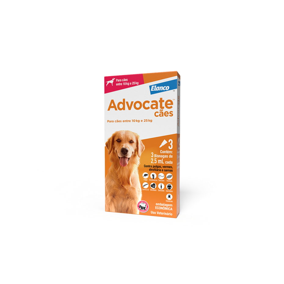 ADVOCATE™ E UMA PIPETA DE USO TOPICO MENSAL E FACIL APLICACAO QUE OFERECE MULTIPROTECAO CONTINUA CONTRA PULGAS, VERMES, SARNAS E PREVINE A INFESTACAO CAUSADA PELA DIROFILARIA IMMITIS. ALIVIO RAPIDO E EFICACIA GARANTIDA.