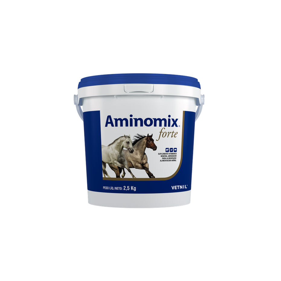 Aminomix ® Forte fornece diariamente as doses essenciais para a construção e manutenção de estruturas orgânicas do animal, de forma que na criação seja atingido o máximo do potencial genético. Os ingredientes prontamente assimiláveis em sua fórmula propiciam uma melhora do estado geral dos animais.