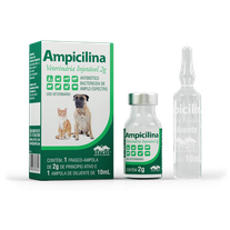 Ampicilina Veterinária Injetável 2 g é indicada para cães e gatos no tratamento de infecções respiratórias, geniturinárias e gastrintestinais.