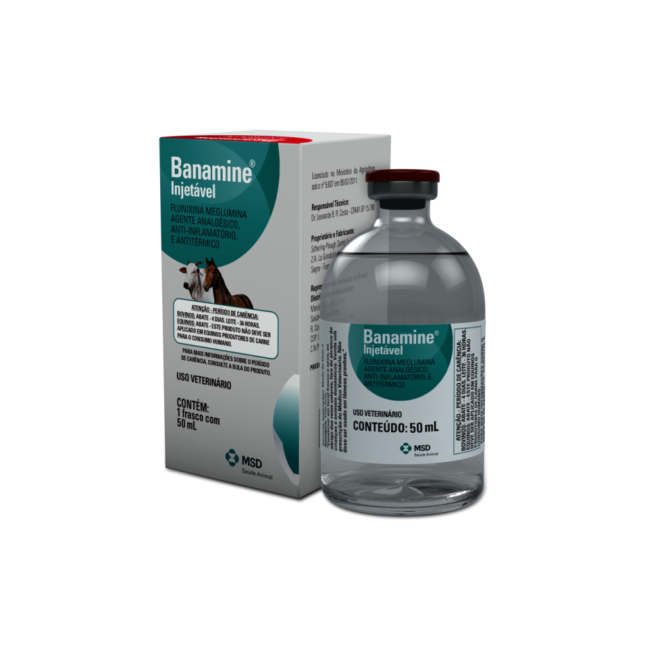 POTENTE ANALGÉSICO, NÃO-NARCÓTICO, NÃO-ESTEROIDAL, COM ATIVIDADE ANTIINFLAMATÓRIA E ANTIPIRÉTICA. BANAMINE® INJETÁVEL É RECOMENDADO PARA EQUINOS E BOVINOS. EM TODOS OS CASOS DE DOR, FEBRE E/OU INFLAMAÇÃO.