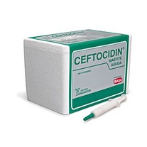 Indicações e Dosagem: Está indicado em todas as infecções provocadas por germens sensíveis que envolvam a glândula mamária manifestando Mastites Clínicas. É aconselhável que o tratamento seja instaurado logo no início. Prévio à administração de CEFTOCIDIN deve evacuar-se ao máximo o quarto afetado, seguindo com uma correta higiene dos tetos.