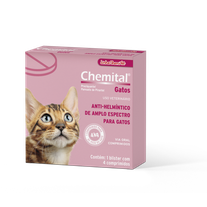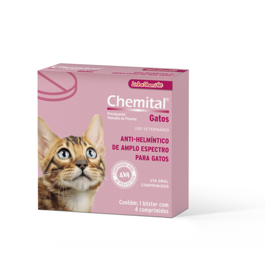 O VERMÍFUGO CHEMITAL GATOS É UM ANTI-HELMÍNTICO DE AMPLO ESPECTRO PARA GATOS, QUE COMBATE COM EFICÁCIA FORMAS ADULTAS E LARVÁRIAS DE CESTÓIDES, ANCILOSTOMÍDEOS E ASCARÍDEOS QUE INFESTAM OS GATOS. CHEMITAL GATOS POSSUI, ALÉM DE EXCELENTE ATUAÇÃO