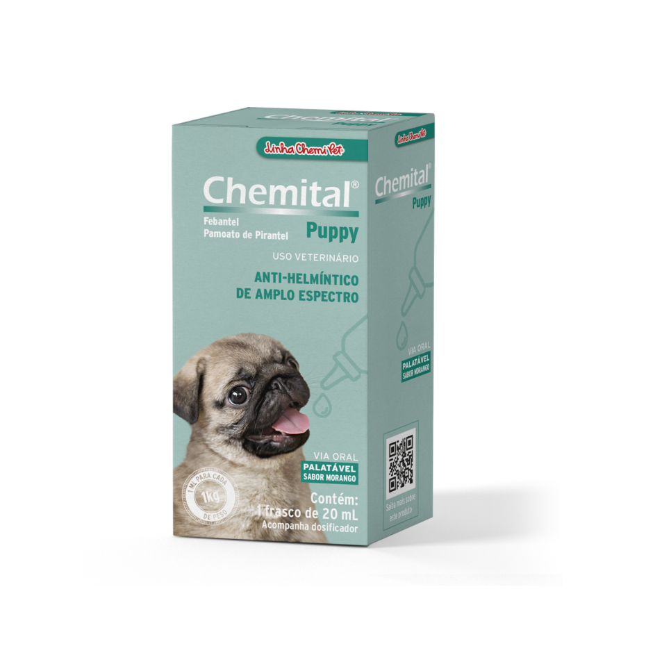 O VERMÍFUGO CHEMITAL PUPPY É UM ANTI-HELMÍNTICO DE AMPLO ESPECTRO PARA FILHOTES DE CÃES E PARA CÃES ADULTOS DE RAÇA MINIATURA. CHEMITAL PUPPY COMBATE COM EFICÁCIA FORMAS ADULTAS E LARVÁRIAS DE ANCILOSTOMÍDEOS.