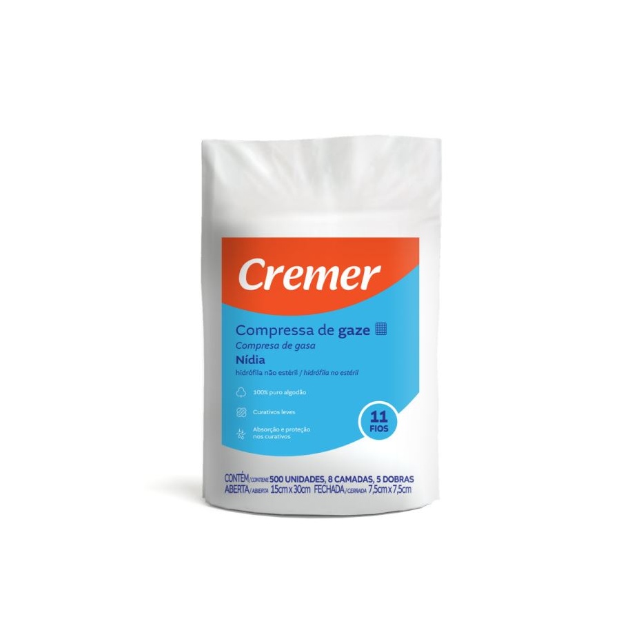 Compressa Gazes Nidia 11 Fios 7,5 x 7,5 cm 500un