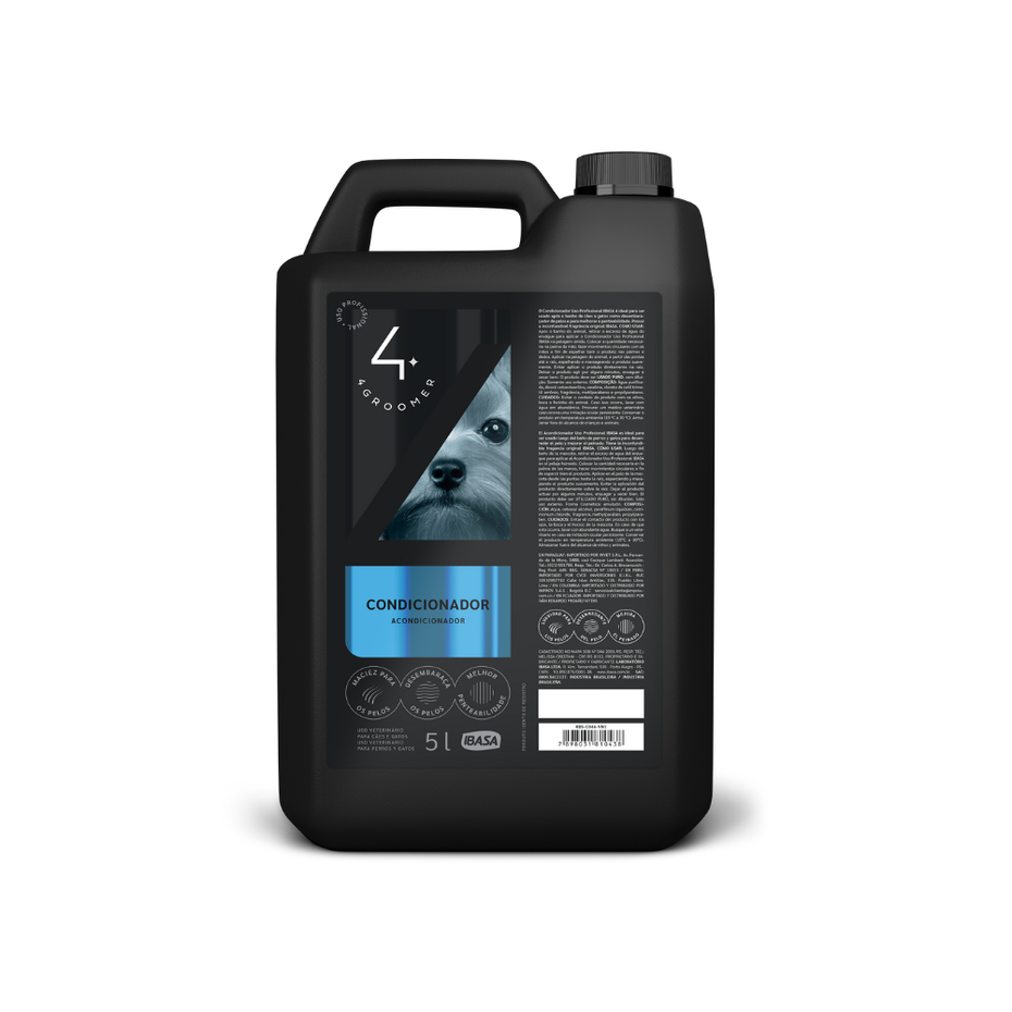 O Condicionador 4 Groomer é ideal para ser usado após o shampoo para facilitar o desembaraço e o selamento dos fios e eliminar a eletricidade estática dos pelos de cães e gatos, auxiliando a penteabilidade. Recomendada a aplicação pura.