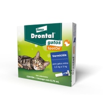 O DRONTAL SPOT ON E INDICADO PARA O TRATAMENTO E CONTROLE DAS VERMINOSES INTESTINAIS DOS GATOS. ESTE PRODUTO TEM TEM RAPIDA ACAO E COMBATE OS VERMES NAS FASES LARVAIS E ADULTAS, E EM UMA UNICA DOSE, GARANTE A SEGURANCA DO BICHANO. CONTEM UMA PIPETA.