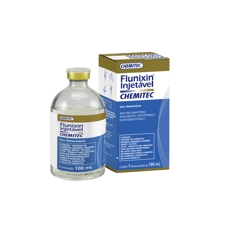 • FLUNIXIN INJETÁVEL CHEMITEC É UM ANTI-INFLAMATÓRIO NÃO ESTEROIDE, NÃO NARCÓTICO QUE APRESENTA POTENTE AÇÃO ANALGÉSICA, ANTITÉRMICA E ANTI-ENDOTÓXICA. É INDICADO PARA EQUINOS, BOVINOS E SUÍNOS, PARA O TRATAMENTO DA DOR (INCLUSIVE CÓLICA)