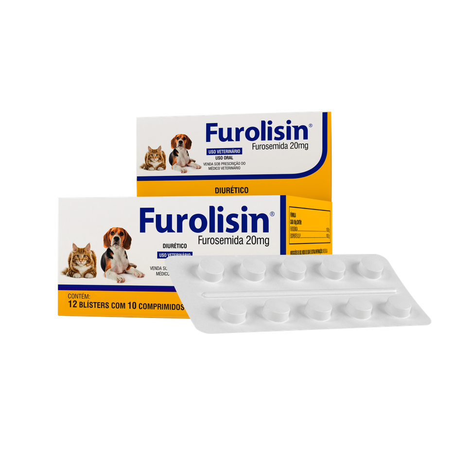 Furolisin® é um diurético à base de furosemida, indicado para cães e gatos. Atua no segmento ascendente da alça de Henle, inibindo a reabsorção de sódio, potássio e cloreto, promovendo a diurese.Modo de uso: