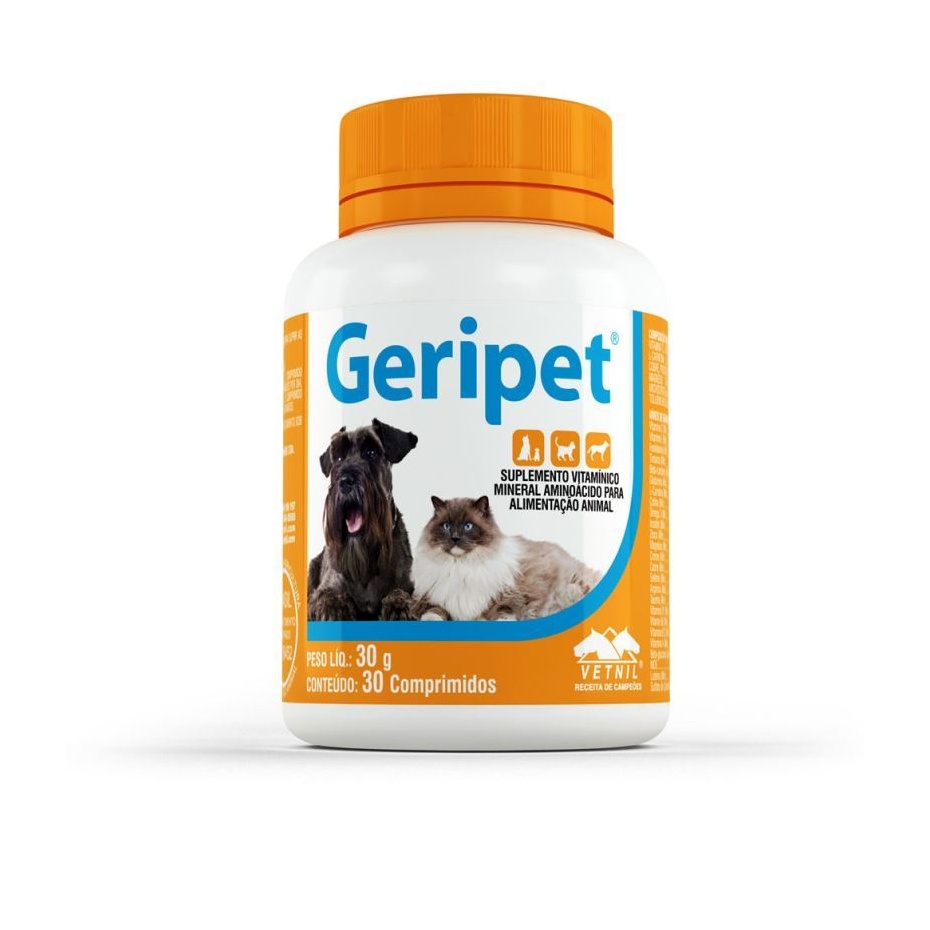 Geripet® é um produto formulado especialmente para suprir as principais demandas nutricionais de cães e gatos com idade mais avançada, uma vez que animais idosos demandam nutrientes específicos para uma melhor qualidade de vida. Possui ainda Inositol, Ômega 3 e Glutamina. Com alta palatabilidade, é facilmente aceito por cães e gatos.