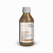 Antisséptico e Antifúngico Tópico, Gliciodo é um antisséptico e antifúngico tópico, indicado na prevenção e controle da mastite, desinfecção de ferimentos e umbigo de recém-nascidos, auxiliar na cicatrização de epitelioma contagioso (bouba), lesões de actinomicose, actinobacilose e esporotricose em bovinos, caninos, caprinos, equinos, felinos, ovinos e suínos. Espectro antibacteriano e antifúngico: Actinobacillus sp, Actinomyces sp, Sporothrix sp, Candida sp, Staphylococcus sp, E.coli, Enterobactersp, Klebsiellasp, Corynebacteriumsp e Pseudomonassp.