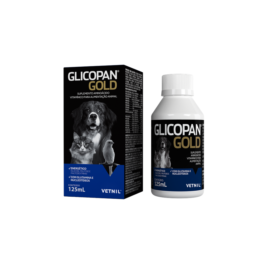 Glicopan® Gold é um produto para o auxílio da rápida recuperação, estímulo do apetite e melhora do estado geral. Especialmente desenvolvido a base de glicose, frutose e maltodextrina, confere energia imediata e prolongada, importantes para a disposição e vitalidade. Combina nutrientes consagrados, como nucleotídeos, que otimizam os efeitos do produto, favorecendo a manutenção do equilíbrio orgânico. Possui ótima palatabilidade, conferindo praticidade de utilização e garantia dos resultados.