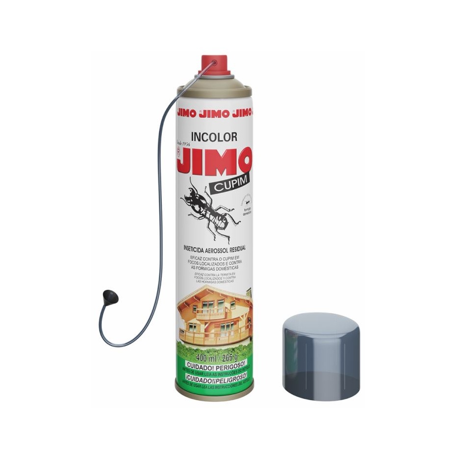 O INSETICIDA CUPIM AEROSOL JIMO É UM INSETICIDA PRONTO PARA O USO E COM ALTO PODER RESIDUAL, QUE COMBATE OS FOCOS DE CUPINS E BROCAS LOCALIZADOS EM PEQUENAS PEÇAS DE MADEIRA.