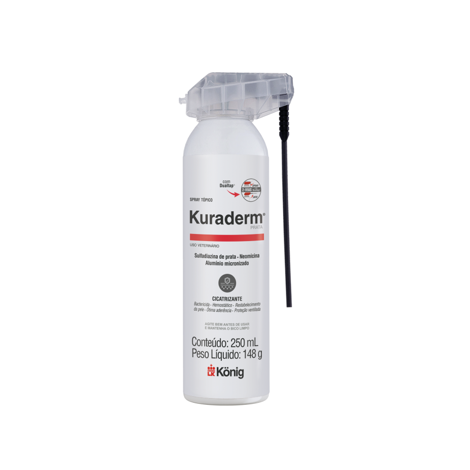Kuraderm é um cicatrizante potente com ação antibiótica para cães e gatos. Possui cristais de alumínio micronizados que ventilam e formam uma película protetora promovendo uma cicatrização mais rápida. É indicado para cicatrização por segunda intenção, escaras de decúbito, picadas de inseto, queimaduras, pós cirúrgico e feridas em geral.