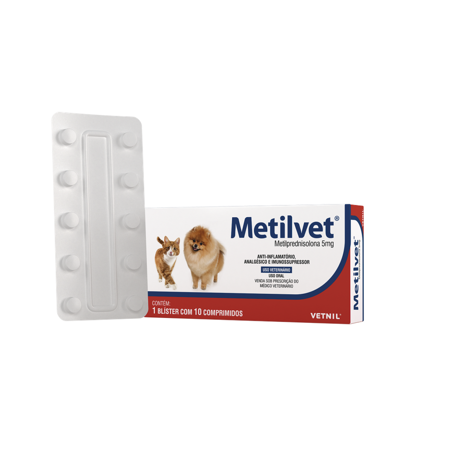 Metilvet® é indicado como anti-inflamatório, analgésico e imunossupressor para cães e gatos. Portanto, pode ser utilizado em terapias para controle da coceira em dermatoses alérgicas, controle terapêutico de doenças autoimunes e também em situações em que se deseja uma potente ação anti-inflamatória.