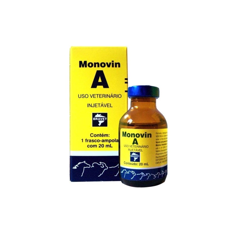 O REMÉDIO MONOVIN A É INDICADO PARA SUPRIR A FALTA DE VITAMINA A NO ORGANISMO DE ANIMAIS DE CRIAÇÃO, EM ESPECÍFICO, BOVINOS. SUA FÓRMULA CONCENTRADA AJUDA A TRATAR PROBLEMAS DE CRESCIMENTO, INFECÇÕES NOS OLHOS E ALTERAÇÕES NOS TECIDOS MUSCULARES.