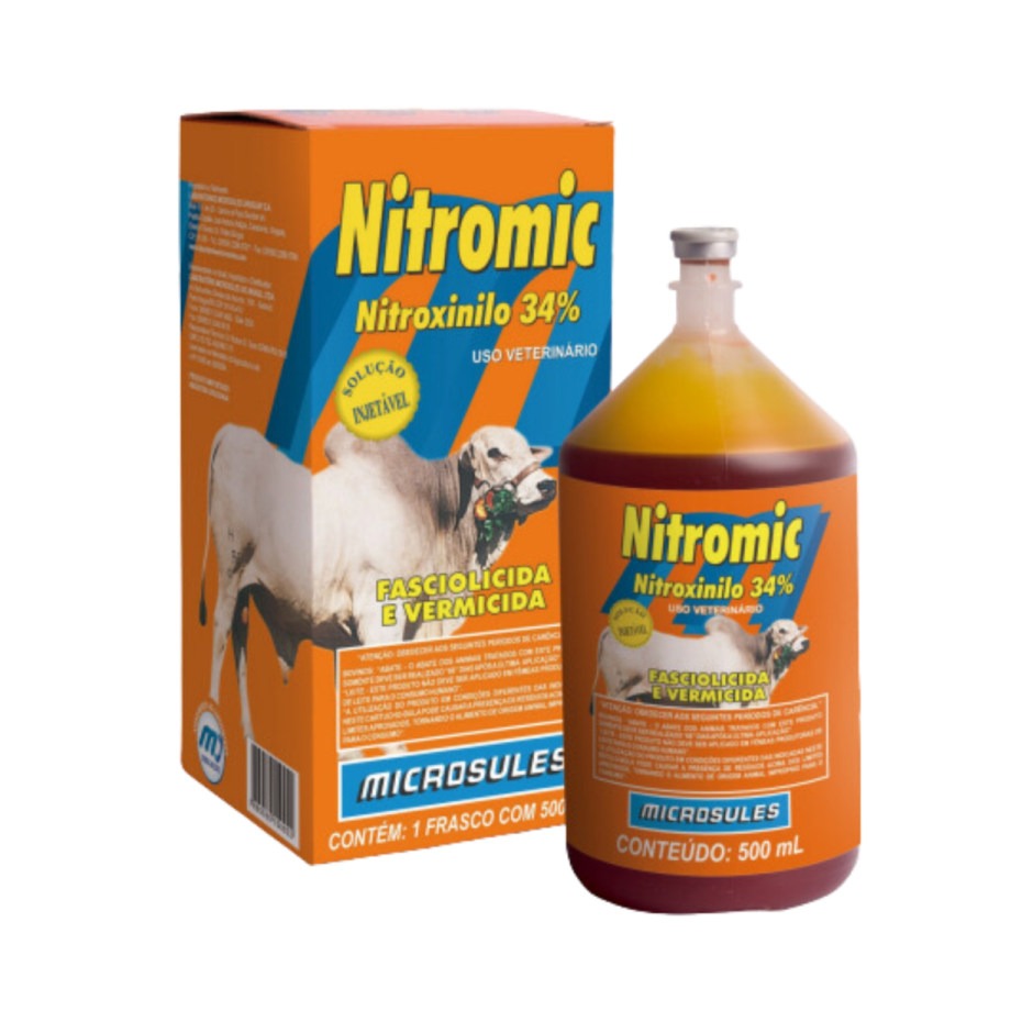 SAGUAYPICIDA, VERMICIDA E ESTRICIDA. NITROMIC É INDICADO PARA O CONTROLE DA FASCIOLASE E OUTRAS PARASITOSES GASTROINTESTINAIS DE RUMINANTES E CANINOS.