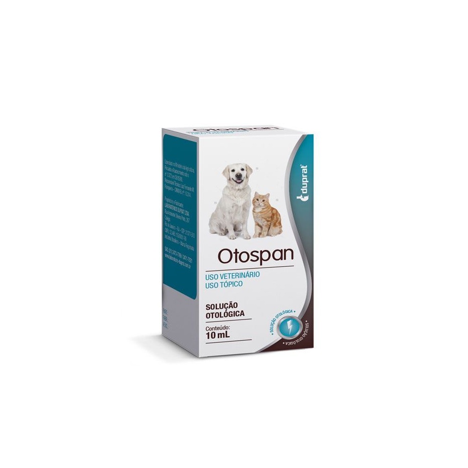 • A SOLUÇÃO OTOLÓGICA DUPRAT OTOSPAN DESTINA-SE AO TRATAMENTO DAS OTITES EXTERNAS, AGUDAS OU CRÔNICAS DOS ANIMAIS, CAUSADAS OU COMPLICADAS POR BACTÉRIAS SENSÍVEIS À POLIMIXINA B E A NEOMICINA.