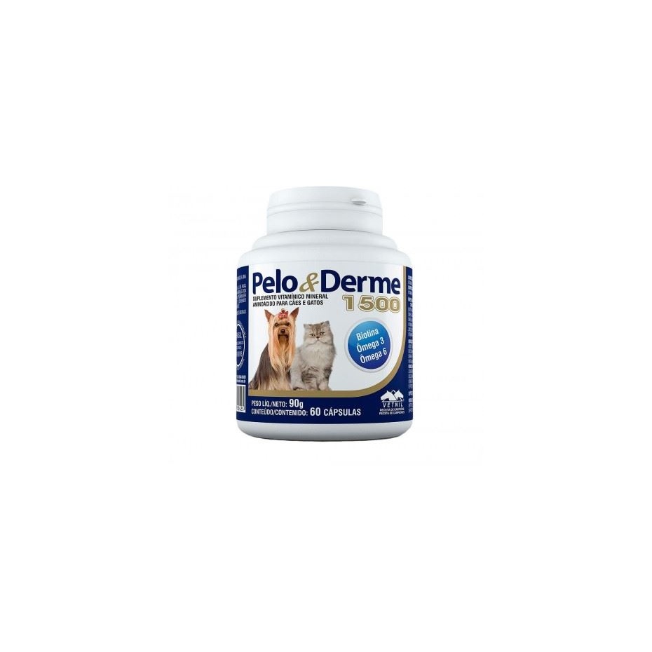 Suplemento contendo ácidos graxos essenciais, como Ômega 3 (Ácido Eicosapentaenóico e Ácido Docosahexaenóico) e Ômega 6 (Ácido Linoléico), vitaminas e minerais, os quais atuam na derme e pelos de cães e gatos. Indicado para o fortalecimento e manutenção da estrutura e função da pele e pelos dos animais.