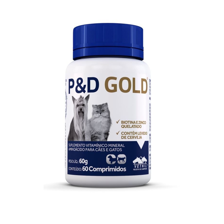 Pelo & Derme® Gold possui Biotina, Zinco quelatado e vitaminas A e E. Sua fómula contém ainda os ácidos graxos essenciais Ômega 3 e Ômega 6, Metionina e Levedo de cerveja, que melhoram a ação do produto.