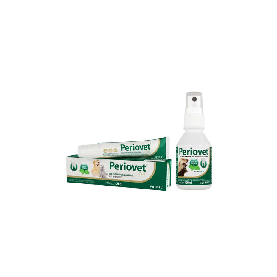 Periovet® é uma solução para a higienização oral de cães e gatos. Com sabor menta, Periovet® está disponível em apresentações líquida e gel, que possibilita a praticidade para a utilização durante o processo de manutenção da saúde bucal de cães e gatos, seja na clínica ou em domicílio.