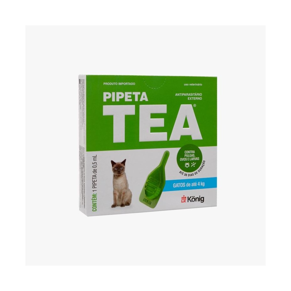 Pipeta Tea é uma solução pulguicida composta por ativos extremamente seguros e aplicados por via tópica em gatos, variando a dose pelo peso indicado em cada embalagem.
