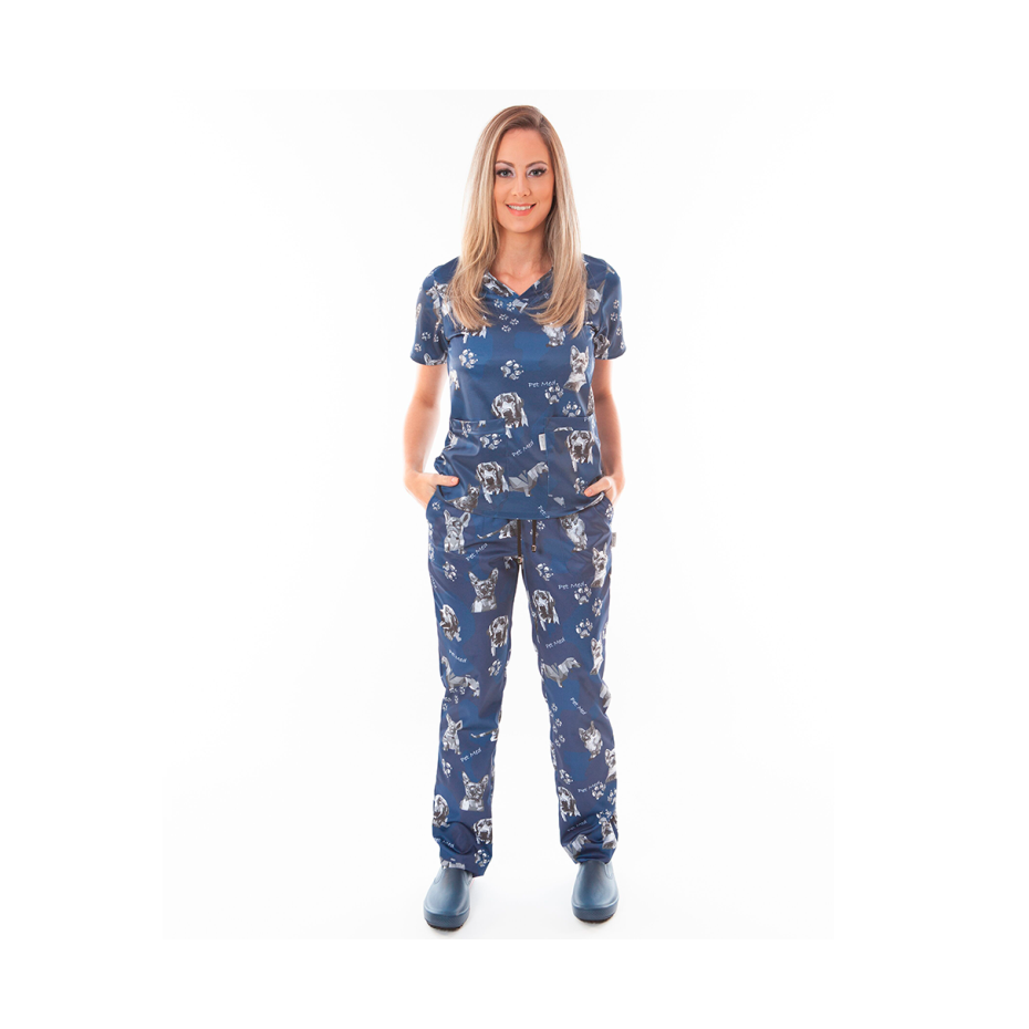 Scrub Blusa Feminina Cao e Gato Azul Marinho 40 1un