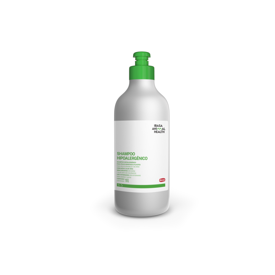 Shampoo dermatológico especialmente desenvolvido para banho de filhotes e animais com pele sensível. Formulação comprovadamente hipoalergênica que limpa suavemente sem irritar. O Shampoo Hipoalergênico é feito com matérias-primas especiais com agentes de limpeza derivados do coco e do milho, que limpam suavemente, e proteínas hidrolisadas do trigo, que contribuem na suavidade e dão condicionamento e brilho. Os extratos de Aloe vera e Aveia tornam o produto ainda mais suave. Não contém corantes.
