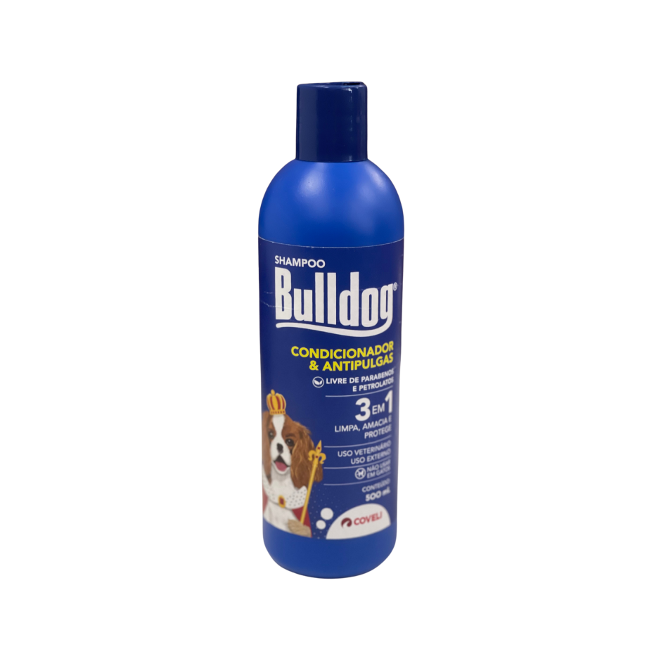 SHAMPOO BULLDOG ANTIPULGAS CONDICIONADOR É A BASE DE PIRETRÓIDE, COMBATE AS PULGAS QUE INFESTAM OS CÃES.