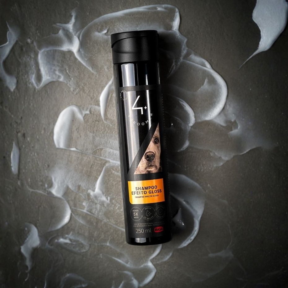 O Shampoo Efeito Gloss 4GROOMER, além dos tensoativos que promovem uma limpeza eficiente, esse Shampoo proporciona um banho de brilho para todos os tipos de pelos. Fabricado com blend de silicones de alta qualidade e indicado para cães e gatos, proporcionando limpeza, tornando os pelos fáceis de pentear, macios, muito mais brilhantes, flexíveis e consistentes. Possui uma fragrância inspirada em perfumaria fina.