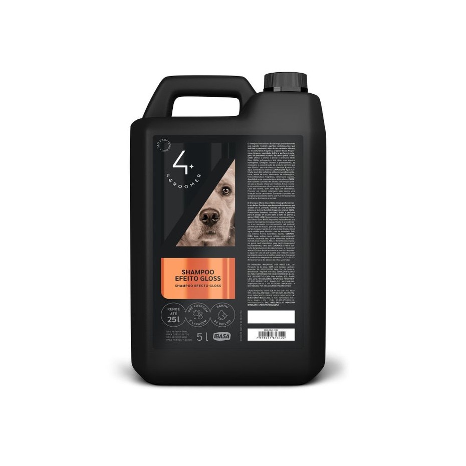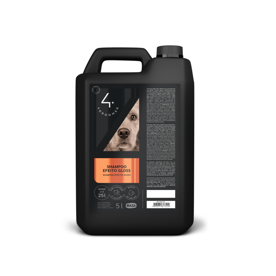 O Shampoo Efeito Gloss 4GROOMER, além dos tensoativos que promovem uma limpeza eficiente, esse Shampoo proporciona um banho de brilho para todos os tipos de pelos. Fabricado com blend de silicones de alta qualidade e indicado para cães e gatos, proporcionando limpeza, tornando os pelos fáceis de pentear, macios, muito mais brilhantes, flexíveis e consistentes. Possui uma fragrância inspirada em perfumaria fina.