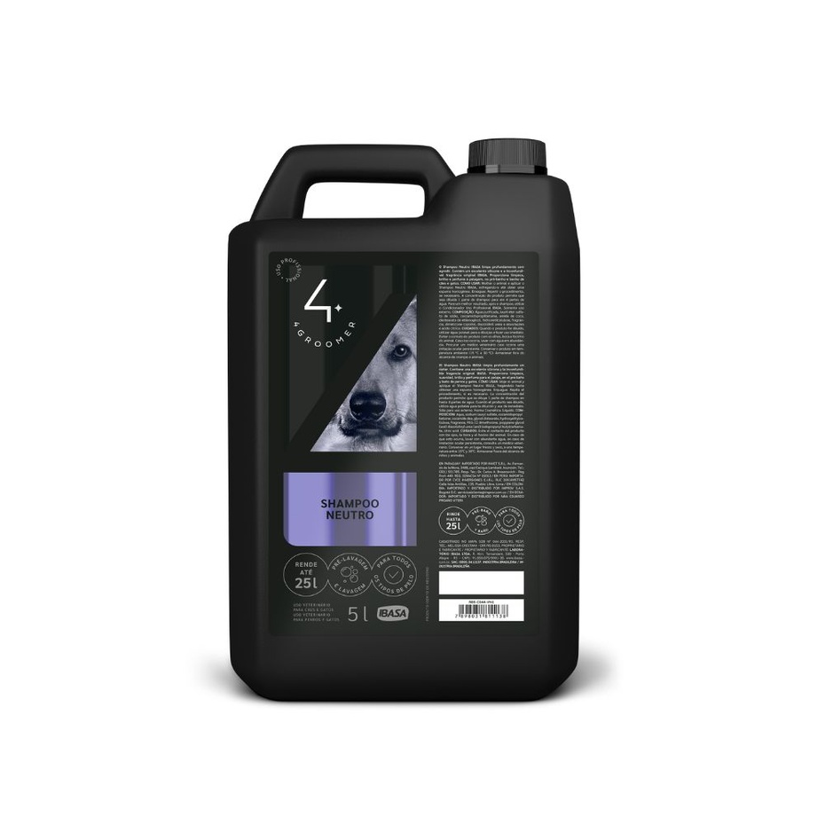 O Shampoo Neutro IBASA é um produto de alto rendimento usado no pré-banho e banho de cães e gatos. Formulado com componentes com grande poder espumógeno que limpam sem agredir. Contém um excelente silicone e a inconfundível fragrância original IBASA.