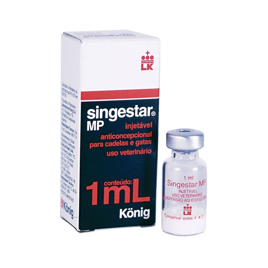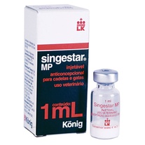 Singestar é um medicamento contraceptivo injetável que atua inibindo a secreção das gonadotrofinas hipofisárias, impedindo a maturação dos folículos, alcançando assim o controle do estro (cio).