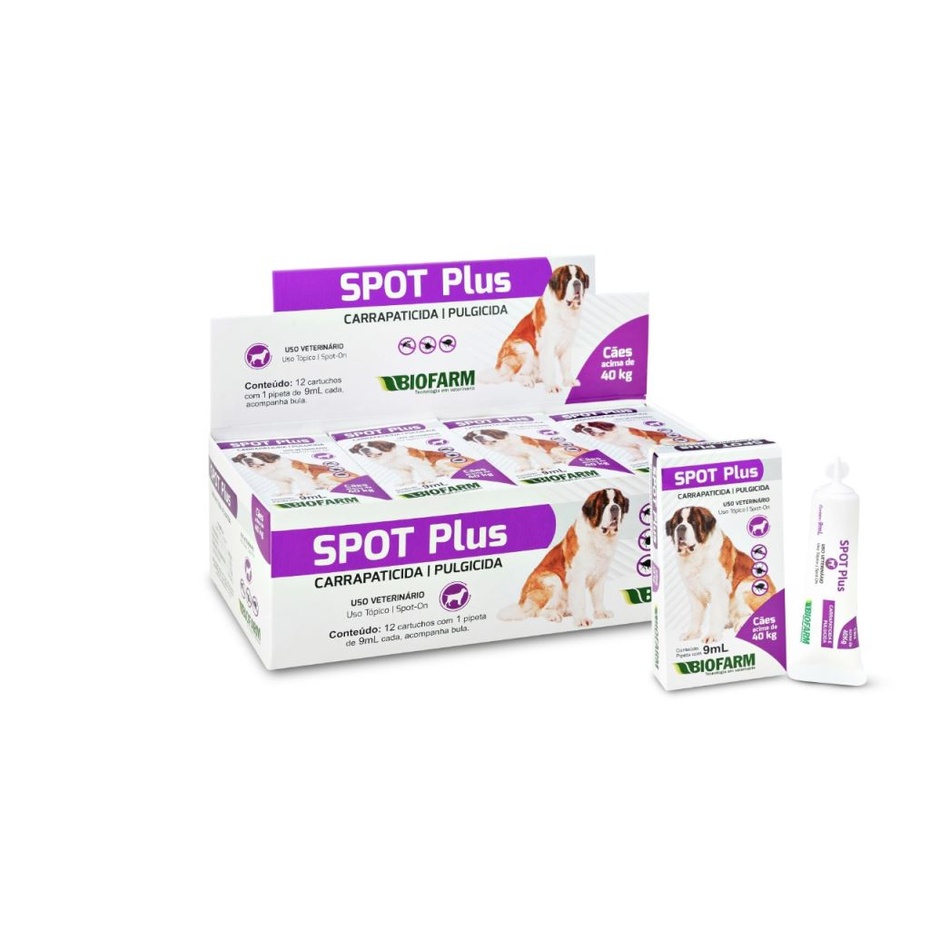SPOT PLUS É INDICADO NO CONTROLE E PREVENÇÃO DE INFESTAÇÕES POR PULGAS (CTENOCEPHALIDES CANIS) E CARRAPATOS (RHIPICEPHALUS SANGUINEUS) NOS CÃES. NO TRATAMENTO E CONTROLE DA DERMATITE ALÉRGICA PELA PICADA DE PULGAS (DAPP)