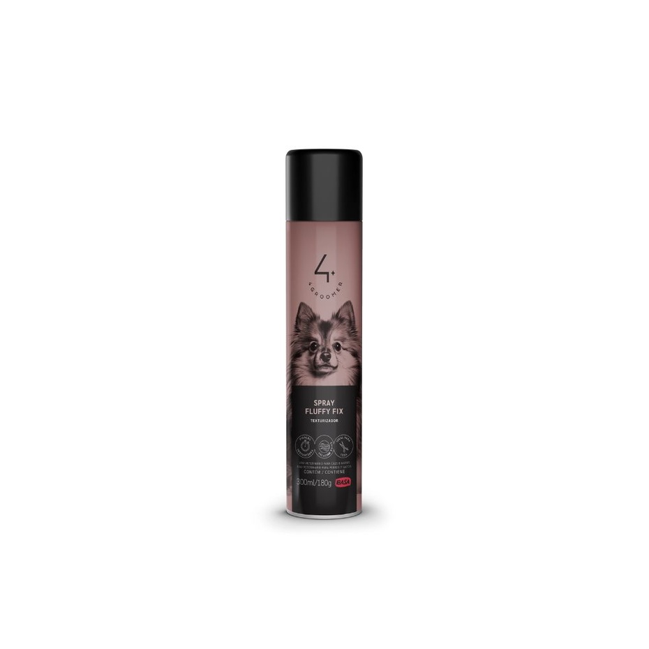 O Spray Fluffy Fix é Destinado a proporcionar durabilidade prolongada, flexibilidade ao pentear e fixação instantânea dos pelos dos pets. Facilita a modelagem e finalização da tosa, conferindo textura sem ressecar. Sua formulação, com polímeros de alta qualidade mantem a pelagem saudável.