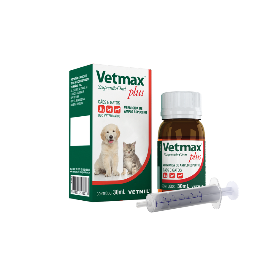 Vetmax® Plus Suspensão Oral é um vermífugo de amplo espectro indicado no combate às infecções por nematelmintos (vermes redondos) e platelmintos (vermes chatos) de cães e gatos.